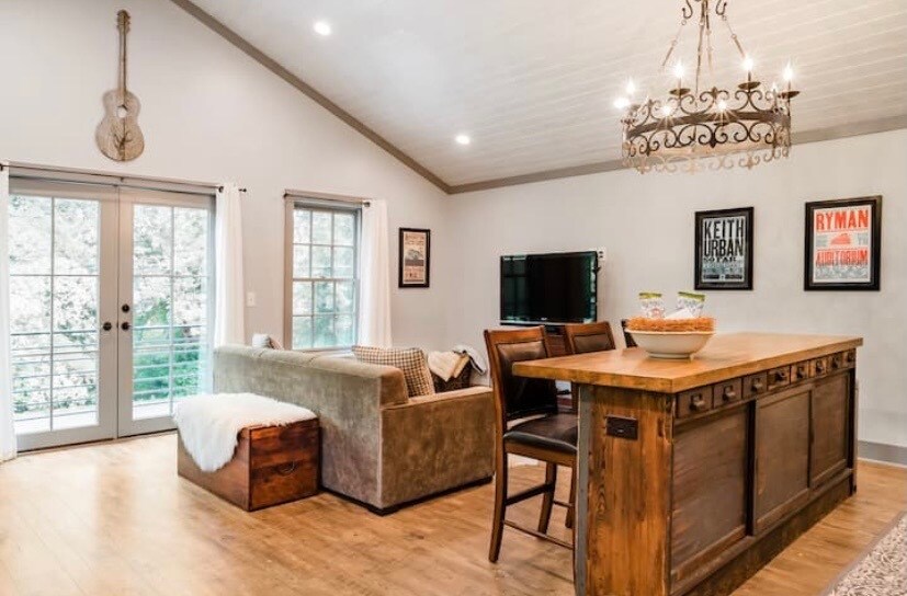 Fully furnished unit located in a quiet neighborhood about 1 mile from Vanderbilt Medical Center. Easy access to I-440 and only 12 minutes from the Nashville International Airport. This unit has a separate entrance and is located above the garage of a family dwelling. Dedicated parking spot in driveway. Large walk in closet. 1B, 1BA with double vanity sink; comfortable queen pullout for friends and family who want to visit. All utilities, cable and internet included in rent. 2 mos minimum. NO PETS.