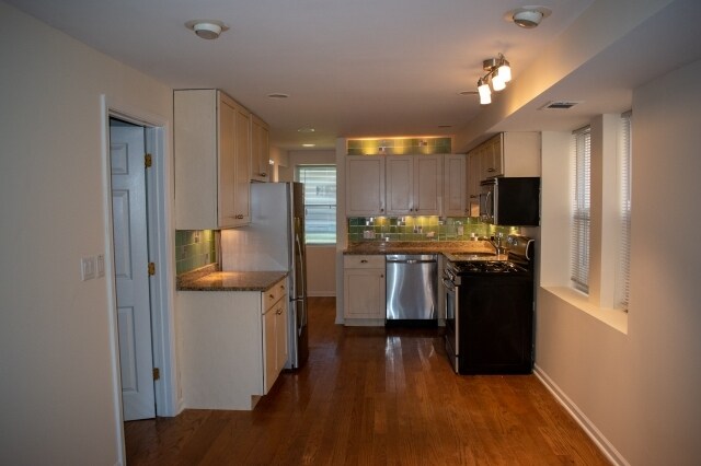 Large fenced yard w/ raised bed for tenant garden. Patio. Front load laundry in unit. Gourmet kitchen with granite counters and SS Apps. Under cab lighting and custom back splash. Tank-less water heater. Radiant heated floors in bathroom. Ground level apartment. No PETS! Michael B Apartment People of Compass 2044 W Roscoe EHO