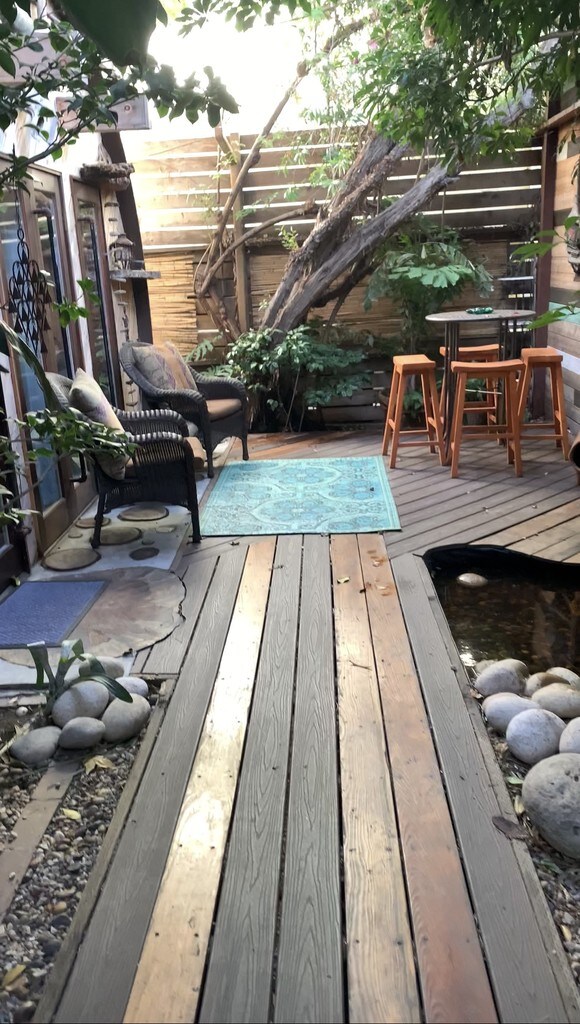 “SECRET GARDEN” AVAILABLE August 1, 2025 LEASE TERMS - $3,600/month - Background check: $49.99 via RentSpree - Security Deposit: $3,600 - Cleaning fee: TBD - Fully Furnished - Utilities Included FEATURES - 1 parking space - 1 bathroom - Private patio w/pond ~400 SF AMENITIES - Refrigerator - Stove - Disposal - Queen Bed - Smart TV