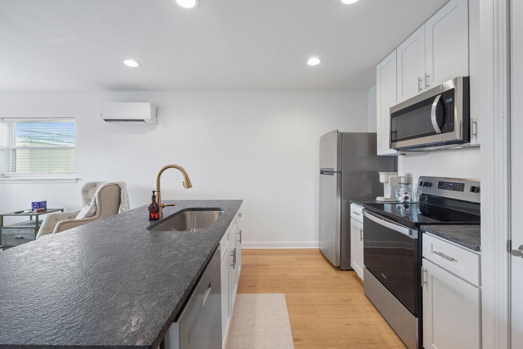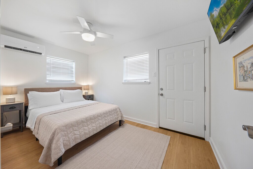Discover this stunning, fully renovated shotgun-style apartment with high-end finishes less than 1/2 mile from LSU. Cherrybomb Coffee, Highland Coffees, and Starbucks all within 5 minutes, restaurants scattered throughout the Northgate area, and upscale dining options just north in downtown. 7 miles to the Health District with hospitals and 9 miles to the Baton Rouge Metropolitan Airport The Space: Sitting within the Flower Streets next to LSU, this boutique complex is getting her much deserved glow-up in our up-and-coming neighborhood. The kitchen is well equipped for longer stays featuring all new appliances, leathered granite countertops, a huge island great for dining or spreading out with a laptop, soft-close drawers, and thoughtfully selected touches such as a custom pantry, dishwasher, garbage disposal, and granite cookware. Coffee and filtered water are provided as well. In the living room you'll find a full-grain leather sofa and a Smart TV for your streaming enjoyment. The bedroom features a queen-size bed, a double-level closet, nightstands, and another Smart TV. It also includes its own mini-split unit for maximum comfort. There is a door that peeks out to a balcony with views of the Mississippi River Bridge. Enjoy your spacious bathroom with a soaking tub, stone surround, a generous vanity, and convenient in-unit laundry, with perks such as laundry pods, shampoo and conditioner, and body wash provided. The unit includes off street parking with complex lighting and security cameras. New complex fencing is in the works. Capital Area Transit (BR) and Tiger Trails Transit (LSU) both have bus lines along our street. Guest Access: The entire one bedroom unit is available for you to enjoy. Please note that there is one flight of exterior stairs to access the home. No smoking. No pets. Two people max. Utilities included. Housekeeping is available for an additional fee.