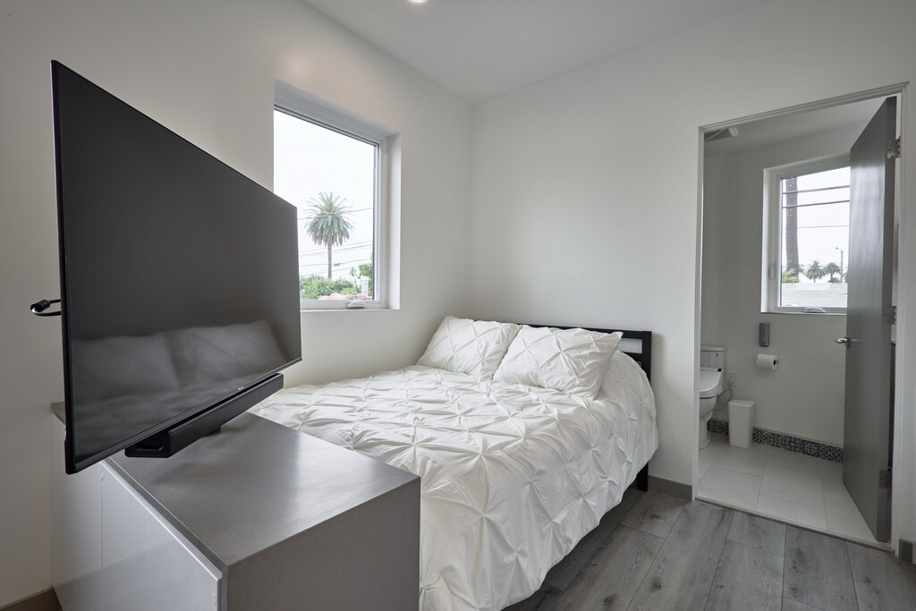 2929 La Brea, a Luxury Co-Living Community in the heart of Los Angeles. Rent Includes Parking & All Utilities! 2929 La Brea is a chic, state-of-the-art, co-living home with all the modern amenities you need for a comfortable and convenient lifestyle. The location allows for quick access to all parts of the city, and the brand-new construction is technology driven, with lush amenities, to make your life extra comfortable. With access to our beautiful shared common areas, you won't ever have to worry about feeling isolated or bored. Halfway between Downtown Los Angeles and Santa Monica, walking distance to the La Brea Expo Line Metro station, immediate access to the 10 freeway, in what is currently the hippest neighborhood in LA, West Adams. 2929 La Brea puts you in the best location to experience the beating heart of the city, with convenience all around you, while still giving you the opportunity to seclude yourself in comfort. Each of our five Co-Living suites have their own spa-inspired bathroom with a walk-in shower and bidet, ample storage space, a living area, sleeping area, wet bar, refrigerator, and all of the comforts needed for modern living. Built in smart features, with a dedicated WiFi network for each suite, and ultra-fast fiber internet feeding the home, means you will always have the comforts of modernity at your fingertips. 2929 La Brea is much more than a traditional apartment building; it is the headquarters for balanced, luxury living that doesn't break the bank. Rent includes all utilities including Water, Gas, Electricity, Internet and Trash; Furnished Suite; Common Areas including Roof Deck and Washer Dryer; and Weekly Cleaning of All Common Areas. $1695 is for a 12-month lease. Visit our website, 2929LaBrea .com for more info, and contact us for move-in specials and discounts.