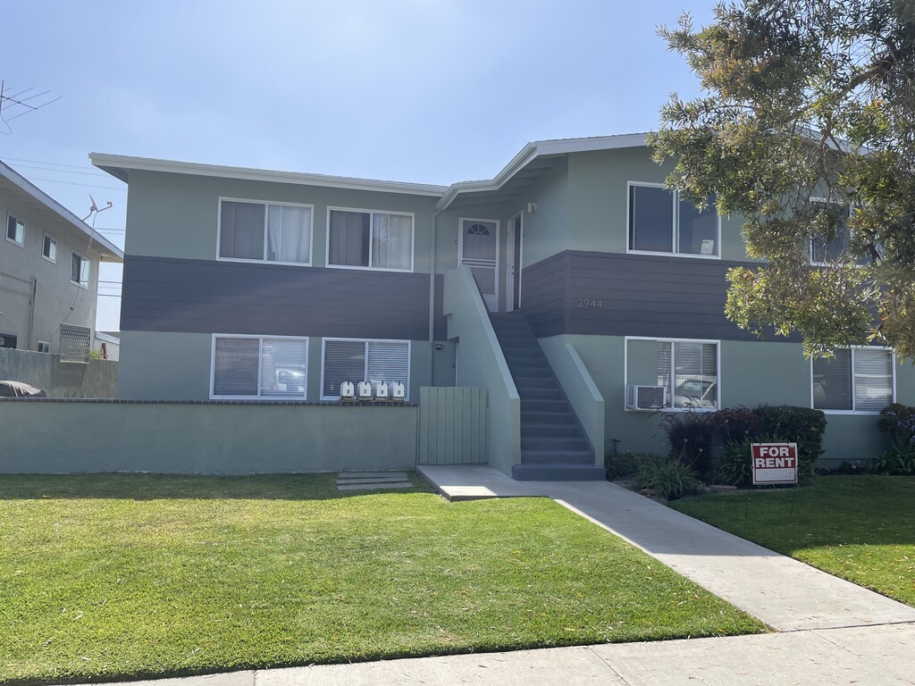 two bedroom one bath, one car garage, one parking space assigned . The unit has been completely remodeled throughout. It has washer, dryer, hook ups, dishwasher electric range, new cabinets, quartz, countertop, lTile floor through out ,bathroom completely remodeled Master bedroom has walk-in closet, and the other bedroom has mirrored closet doors. Beautiful sunsets and ocean breeze