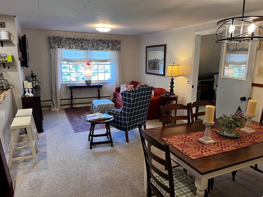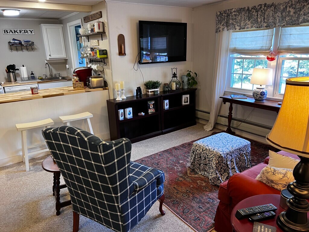 This fully furnished, approximately 1,100 sq. ft. home offers comfort, convenience, and a wonderful location in Bridgton. The spacious bedroom features a king-size bed, dressers, and two walk-in closets. The updated kitchen is equipped with modern appliances including a refrigerator, dishwasher, and microwave, making it perfect for everyday living. Enjoy a welcoming living area with a TV, plus an additional TV in the bedroom and a comfortable office/library space—ideal for remote work or quiet reading. The home is well-insulated and features efficient oil hydronic baseboard heating, high-speed internet, and a reliable well and septic system. Situated just steps from Bridgton Highlands Country Club and Highland Lake, you’ll have easy access to golf, swimming, and scenic walks. The property is also close to downtown Bridgton’s shops and restaurants, the Pondicherry walking trails, and just minutes from Pleasant Mountain Ski Area. Fryeburg is about 20 minutes away, and North Conway, NH, is a quick 35-minute drive. Whether you’re seeking a peaceful seasonal retreat or a comfortable long-term stay, this cozy Bridgton rental offers the perfect blend of charm, convenience, and location. This apartment is fully furnished and includes snow removal, lawn mowing, trash removal, utilities which includes electric, heat ,a/c ,water, sewer and high speed internet. This apartment is connected to a backup generator.