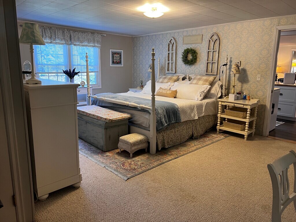 Cute & Cozy, 1 bedroom, King size bed, 1 bath apartment located on Highland Road in the Beautiful town of Bridgton, Maine. Steps away from Bridgton Highlands Country Club, an 18-hole golf course, Highland Lake, and the center of Bridgton. Close to Pondecherry walking trails. Minutes to Pleasant Mountain Ski Area. Approximately 20 Minutes to Fryeburg, Maine, and 35 Minutes to North Conway, New Hampshire. This charming second-floor 1-bedroom, 1-bathroom apartment on Highland Road offers a perfect blend of comfort and convenience. Accessible via a separate entrance, it ensures privacy and a seamless experience. A separate side entrance. Off road 2 car parking area. Roku is available on both Televisions.