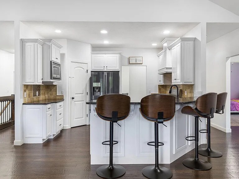This exquisite residence is situated conveniently off Highway 65, within a short distance of retail establishments and medical facilities. It boasts five generously sized bedrooms, three bathrooms, a recreational room, a storm shelter transformed into an expansive walk-in closet, a John Deere room, and a custom-built, aesthetically pleasing wine cellar. The main floor features an office room, a formal dining and living area, two bedrooms, one bathroom, a private en-suite bathroom, a family room and a laundry room. The kitchen is equipped with a five-burner gas stove, and the cabinets have undergone a fresh coat of paint. The basement is spacious, offering a second living area, a kitchenette, two large bedrooms, and a third bathroom. Additionally, it includes a recreational room, a storm shelter, a John Deere room, and two spacious decks overlooking a picturesque lake. The house has undergone a recent repainting and has recently undergone landscaping renovations. It is conveniently situated with an attached three-car garage. Come and experience why this magnificent home should be your next residence.