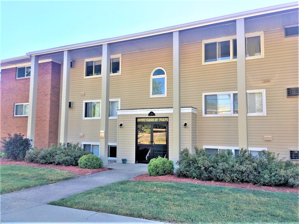 Student Apartment Housing Near Miami University Location is important to busy students. The Courtyards of Miami is located on the corner of East Central Avenue & South Main Street near Miami’s REC Center and is close to the BCRTA bus stop. We offer students affordable, utility friendly housing as an alternative to the smaller dorms at the University of Miami, while still providing quick access to all the university has to offer. The Courtyards offers this unfurnished two-bedroom apartment. Our residents enjoy more privacy and less stress than when having several students share the same living quarters. When considering the utilities paid by the Courtyards, apartment living is more affordable than most houses and offers the camaraderie of the neighboring students.