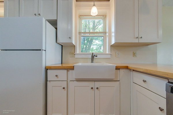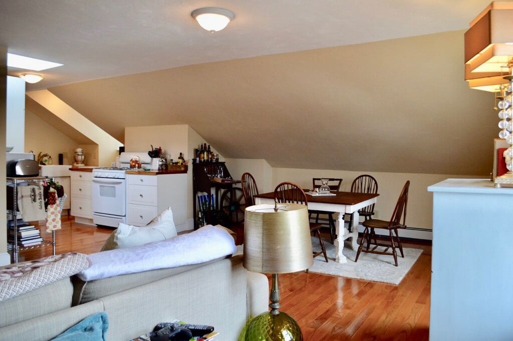 Available June 1st for a yearly term ONLY. NOT A SHORT TERM RENTAL. Adorable 1 bedroom apartment located on the third floor of a 3-family house. This well laid out apartment maximizes the space, making this compact unit very usable and comfortable. Warm and glowing with beautiful hardwood floors and calming paint colors. The kitchen offers surprising storage for such a small space. The crisp white cabinetry is warmed with oak butcher block counter tops. The gas range is flanked by two cabinets with drawers for convenient work-space and storage. A large apron front butcher block sink lends a sense of style and design. Skylights in this space offer increased light and height adding a sense of airy space. The bedroom has a large closet and room for a queen sized bed and maybe a small desk. Co-op washer dryer in basement. Street parking only. Pets considered for an additional $35 per month. Sorry, no smoking. Complete application and background checks required.