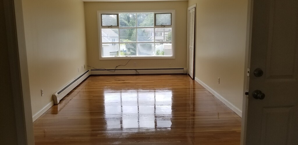 This is a 2st floor open floor plan, 2 bed, 1 bath 800 sq. ft. apartment near Rt. 495. Home is located in a quite family oriented neighborhood. There is plenty of parking, with deeded storage unit, washer & Dryer hook up.