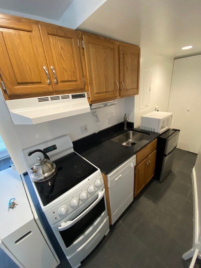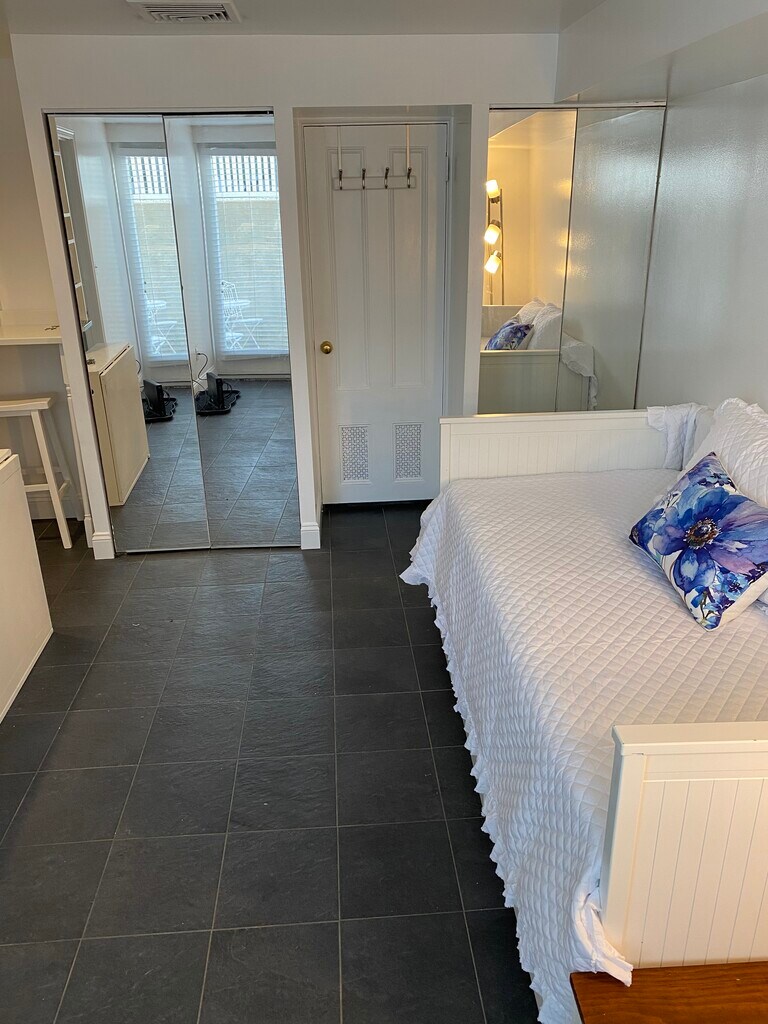 Furnished studio condominium + parking space and private patio. Available now. Lease length from 9 - 12 months or longer. Tenant may include wifi/cable, electric in the rental rate per month or Tenant may pay wifi and utils separately. Nestled in the heart of Wellesley Square is a furnished studio condominium. Private garden leads you to your own living and work space ideal for the student or solo professional who works from home or the one who needs a temporary space while acclimating to the area, transitioning, or downsizing. The space feels like your own tiny house. Private parking, private entrance, self contained with all basic furnishings, dishware, linens. Move in costs: First month's rent Last month's rent one half month rent held as a security deposit. Pet fee if applicable of $100.