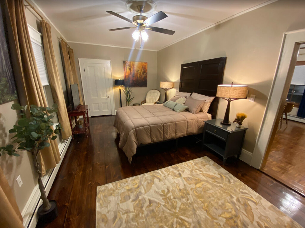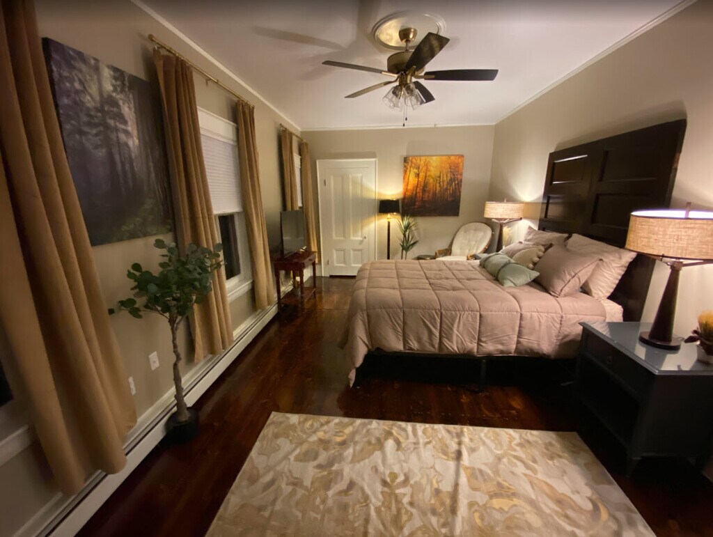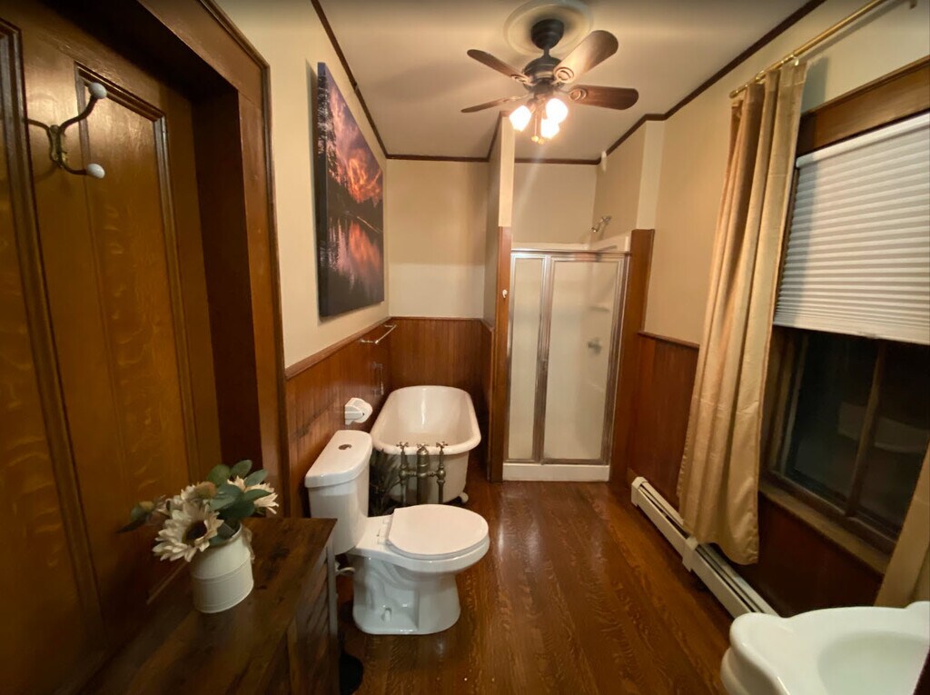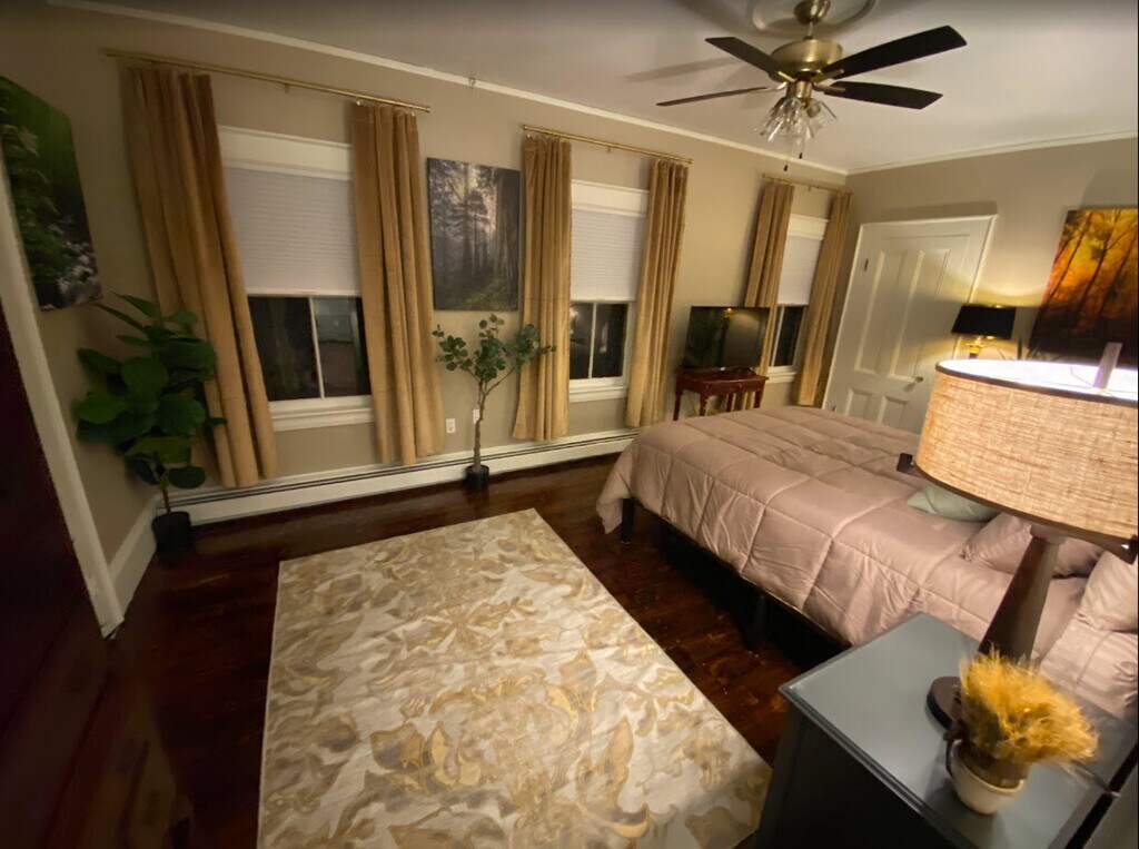 Check out this beautiful Second Empire home in historic Red Tavern area, and you'll find one of the nicest Victorian homes around! Fully furnished 1bdrm + in historic owner occupied home. Bus stop a block away. Several hospitals within a few miles. Light filled apt with many windows and but also features blackout curtains. All rooms have smart TVs and ceiling fans. Small office off of kitchen. Hardwood floors throughout. Kitchen features all new appliances including a dishwasher and washer and dryer. Quartz counters with island and bar stools with more than enough cabinets that are fully stocked with anything you could possibly need. Livingroom has comfortable leather sofa and electric fireplace. Large Bedroom features queen bed and luxurious bedding. Bathroom boasts walk in shower, clawfoot tub, and large mirror.
