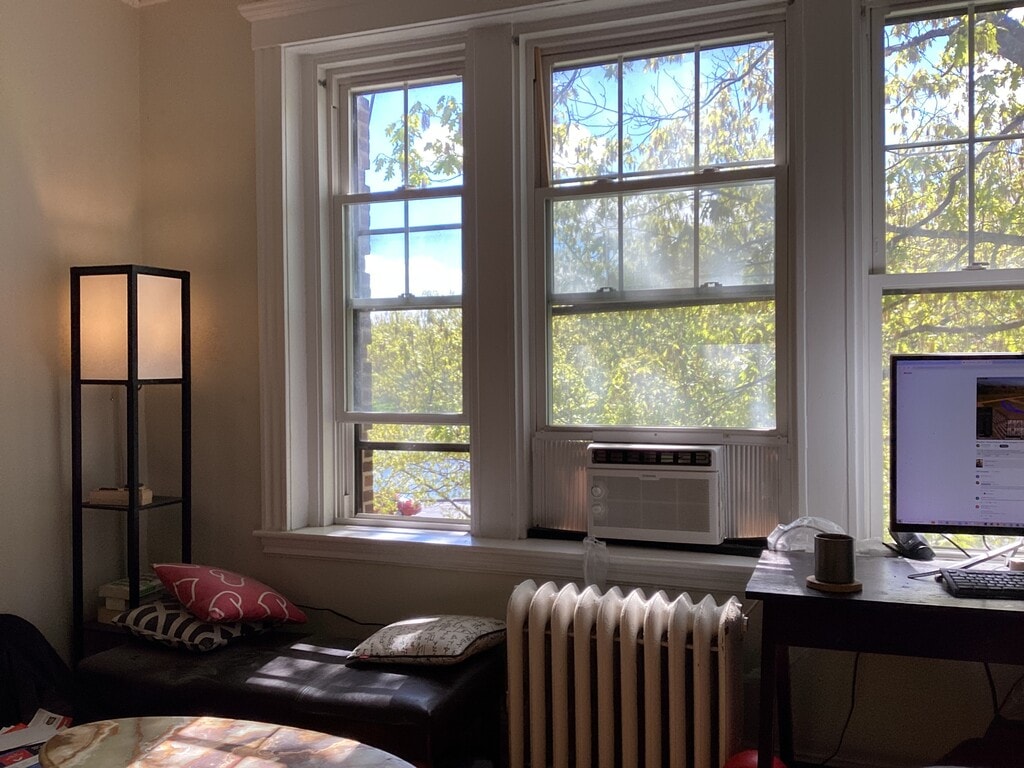 LOCATION Walk to Longwood. High ceiling, bright one bed and one bath unit on the top floor with a view through the window onto beautiful Leverett Pond. Across the street is Olmsted Park. Quiet nature, green land and wildlife environment give you a deep breath from the busy noisy city one block away. Enjoy walking, jogging, biking and more of your outdoor activities. MBTA green lines E and D, Bus #39 and #66 are nearby. This rent includes hot water and heat! 1st Month, Security and Broker Fee