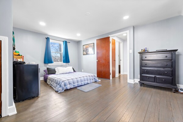 Spacious second floor one bedroom one bath apartment with great natural light. Large bedroom with plenty of space for a full setup. Bright living room with hardwood floors. Updated kitchen with island and stainless steel appliances. Full bathroom with tiled shower and tub. Private second floor balcony perfect for relaxing outside. Separate mudroom for storage or extra bedroom. Shared laundry available in the basement. Gas, water, and sewer included. Tenant pays electric. Comfortable layout with good flow and natural light throughout.