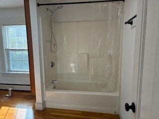 Spacious 3 or 4 bedrooms, 2 bath apartment. Second and third floor of a 2 family. Second floor- eat-in kitchen w/ gas stove, D/W, refrigerator, living room & two bedrooms. All wood floors, circular stairway. Two bedrooms on third floor. Driveway parking. Utilities not included. Shown by realtor appointment only. Call for more details! Unique apartment!