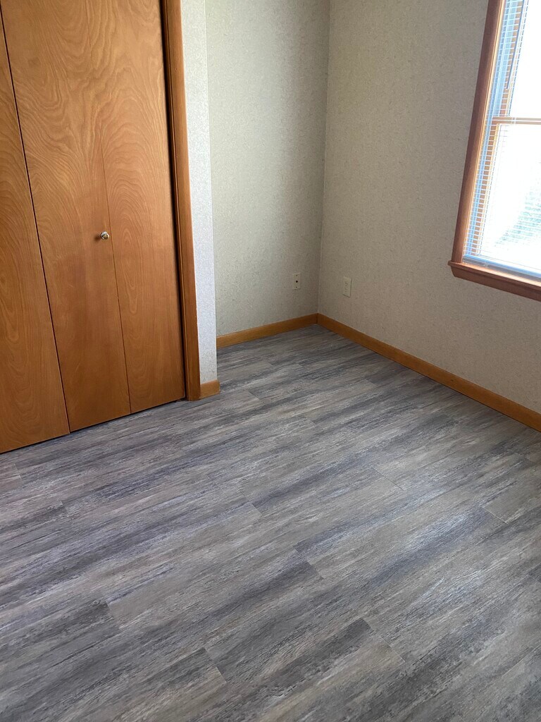 Lower one-bedroom with vinyl plank flooring. Parking at door. Coin-operated laundry across the street in another property.