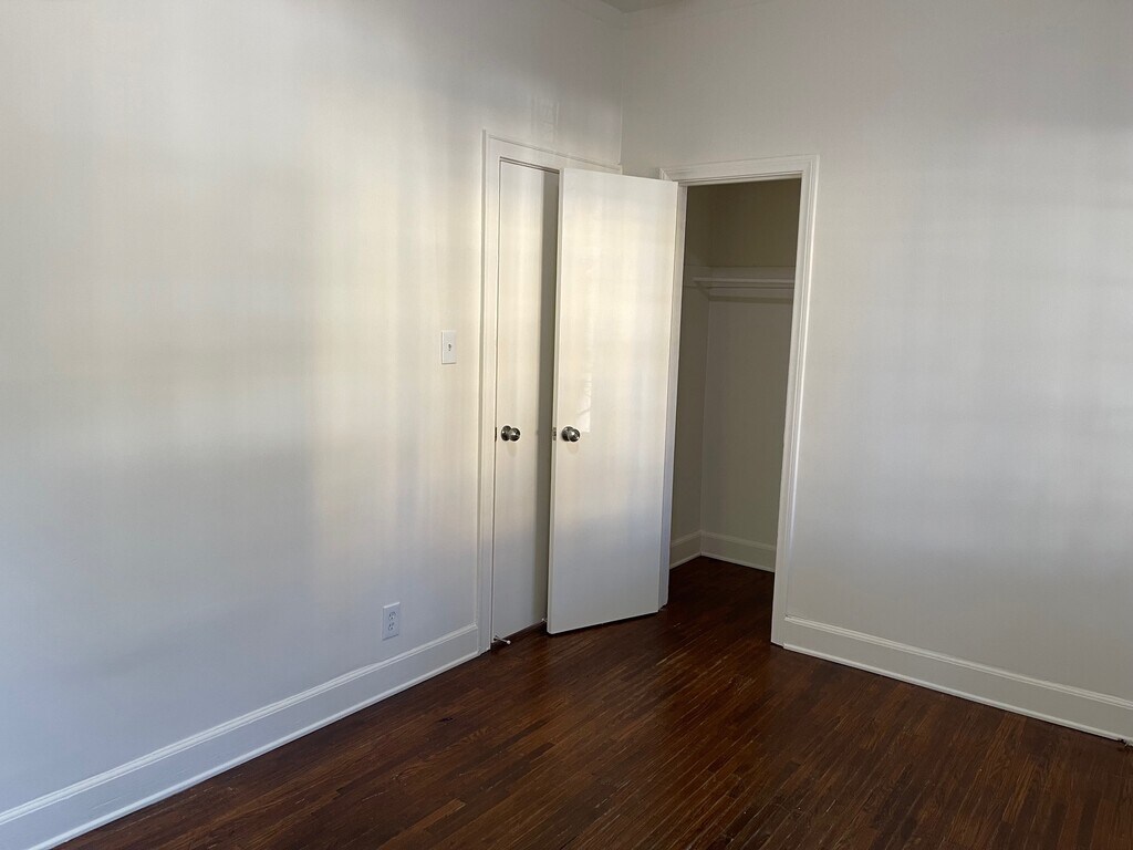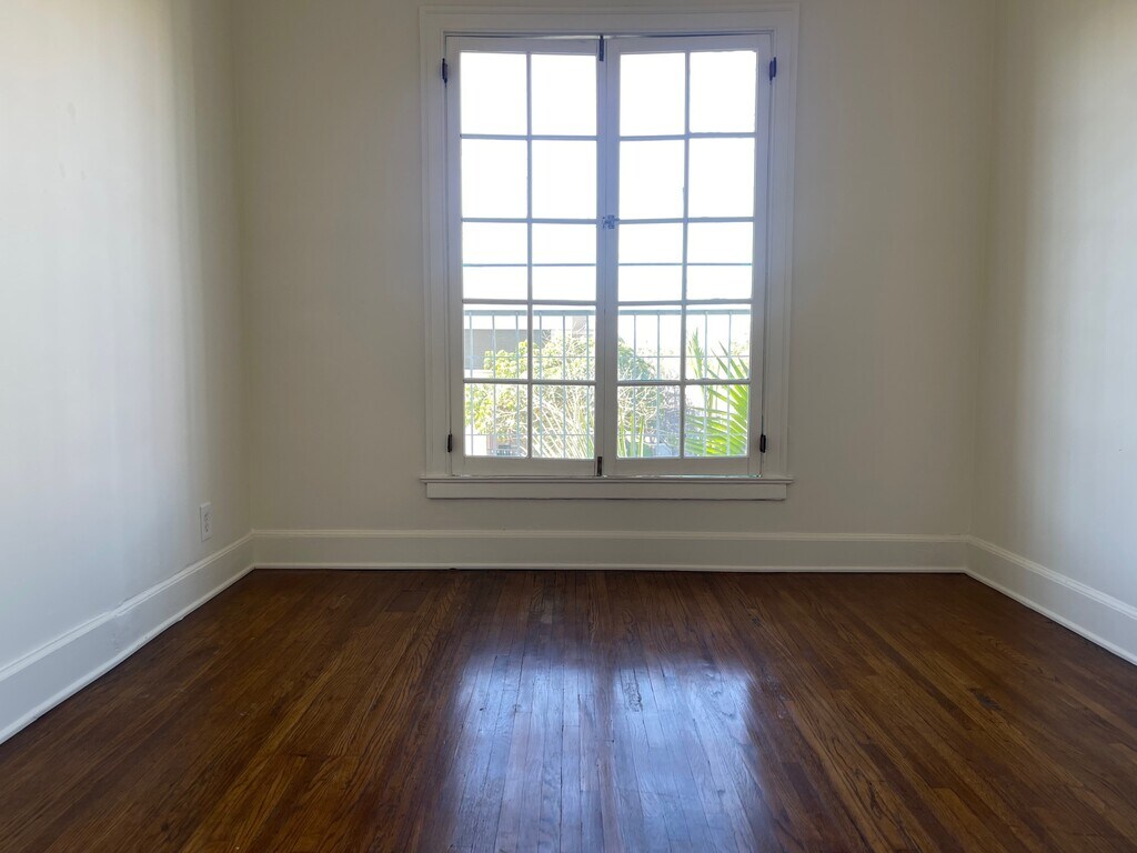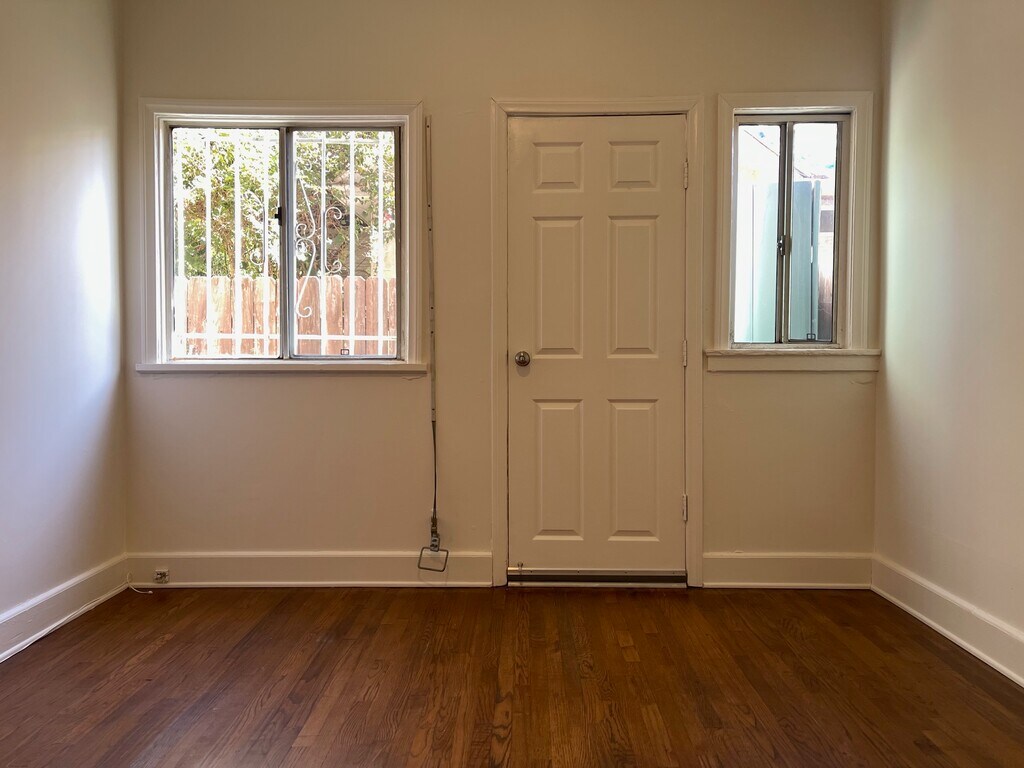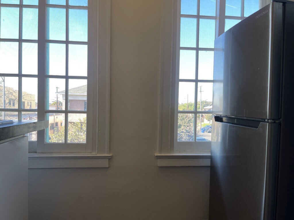 Unit has been freshly painted. Hardwood floors throughout. Tons of windows and lots of natural light. Wall furnace. Junior gas oven/stove. Refrigerator. Ceiling fans in the bedrooms. Stackable washing machine and dryer. Window unit air-conditioner in one bedroom. Wall unit air-conditioner in one bedroom. MUST SEE!!!