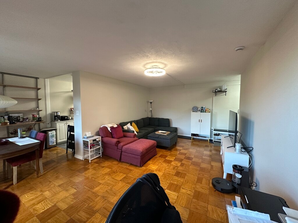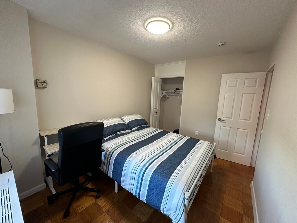ROOM FOR RENT. One room available for a prospective tenant is furnished with a queen bed, bedding & bedding sets, a nightstand, a medium dresser, a small desk and a chair, a lamp, a small closet inside the room and another one on the outside. Common areas include a bathroom, a storage cabinet, living room, dining area and a kitchen. The entire unit is fully furnished. Internet is installed and some streaming services are in place. A small laundry room is 15 steps across the unit while there is a bigger laundry room that opens 24 hours on a lower floor. Located on the fourth floor of the building, the unit provides an easy access to the swimming pool and a picnic area on the same floor that open in summer. The building has a fully-equipped gym for residents and a concierge service to handle all packages and mails. NOTE: Due to technical problems, Interested renter is advised NOT to send application via here.