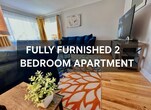 This is a furnished 2 bedroom apartment with utilities and wifi included. This 2- bedroom apartment is located in a quadruplex.. This apartment is perfect for anyone looking for a peaceful and comfortable living space. The apartment boasts a cozy and homey feel, with ample space for relaxation and entertainment. Each bedroom features a comfortable queen-size. The living room in this apartment is spacious and designed for both comfort and entertainment. It features comfortable couches and chairs, a flat-screen TV, and a coffee table, providing a perfect spot for relaxing or hosting guests. The kitchen is well-equipped with modern appliances, including a fridge, oven, microwave, and dishwasher. It also features plenty of storage space. The bathroom is clean and offers a shower/tub combination, providing a relaxing spot to unwind after a long day. Free street parking is available. Paid garage parking is available as well for an additional cost.