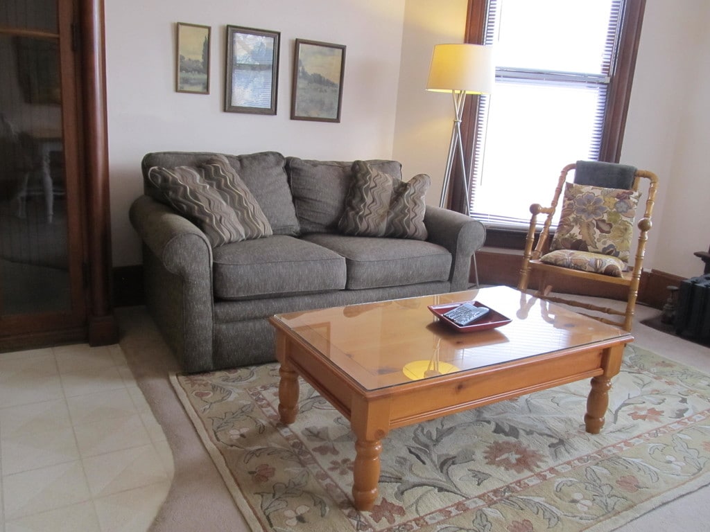 Victorian Mansion in Muscatine's Historic West Hill District. Secure and serene, light filled apartment with river views. Month to Month Rental Agreement. Fully furnished, fully decorated. References are required. Deposit depends on your references. This is a second floor unit with convenient parking in front of the building. It is located one block from the River Front Recreation Area. Everything is included, all utilities, cable TV, WiFi, and professional weekly housekeeping. New laundry room on sight at no charge to clients. Large living area with full size sofa. You can see the Mississippi River from the Living Room windows. Large bedroom with oak furniture and a queen size bed. Everything has been remodeled, nice bathroom with shower only. The oak galley kitchen has a microwave, two burner cook top, dishwasher and an under counter refrigerator. Call me today for a personal showing.