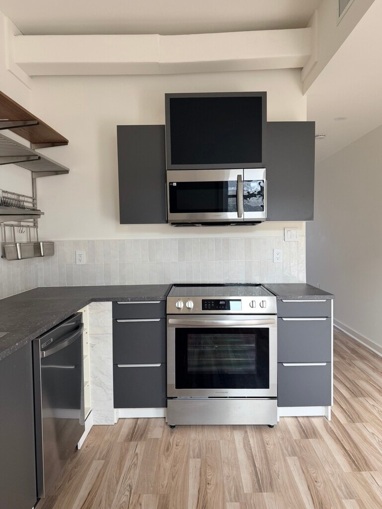 Calling artists, writers, film makers. Super cute, newly renovated, clean-lined, 1 bed 1 bath, first floor apt in 3-plex. Nice light-filled front room for living and or dining. Private bedroom with double hanging closet. 1 full on-suite bathroom with tub shower and storage closet. Creative kitchen with great storage, induction stove, dish washer, disposal and eat-in option. Fridge with ice maker. Ring video doorbell. Shared washer/dryer in shed. Beautiful newly planted outdoor space. Great location for Jazz Fest. City Park and French Quarter are a short bike ride away. Toast restaurant and convenience store, pharmacy, etc walking distance. Cat ok. **Please fill out application and tell me about yourself. Will only show apt. after application is reviewed.