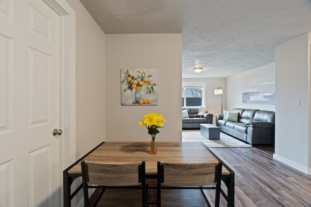 Enjoy this beautifully updated fully furnished mid-term apartment in a prime Spokane location—just minutes from major hospitals, downtown, and Gonzaga University. Perfect for traveling professionals or anyone relocating, it features brand-new appliances, fresh paint and modern finishes. Work remotely in comfort with an adjustable standing desk and ergonomic office chair. You’ll have designated off-street parking and on-site security cameras for peace of mind. The open living area feels bright and welcoming, offering plenty of space to relax after work or study, and the property is surrounded by a beautifully manicured lawn and landscaping, creating a peaceful setting to unwind.
