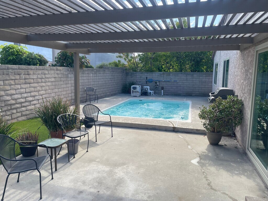 Welcome home! This spacious single level home is located in the quiet, family oriented neighborhood known as "Country Hills". The home is in a Cul de Sac just a short walk to De Portola Park, shopping, restaurants, and grocery stores. Master bedroom with on-suite, two additional bedrooms and full second bathroom with tub. Dining room, living room and family room adjacent to the kitchen area featuring a counter/island perfect for entertaining or gatherings. A large heated swim spa with jacuzzi jets awaits you to unwind on warm or chilly days. Fresh interior paint with new flooring, newly installed quartz countertops, a new stove, oven, dishwasher, fireplace, forced heating, newly installed windows throughout. A two car garage with laundry hook ups and direct entry to the inside of the house. Spacious, enclosed turf backyard with a covered pergola patio area, and multiple citrus trees for your enjoyment.