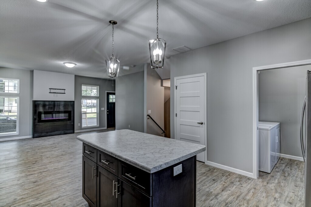 9' HIGH LOFT CEILINGS STAINLESS STEEL APPLIANCES LUXURY VINYL TILE FLOORING THROUGHOUT FIREPLACE WITH MODERN SURROUND OPEN CONCEPT LAYOUT WITH KITCHEN ISLAND SOFT CLOSE CABINETRY PENDANT ISLAND LIGHTING LED LIGHTING THROUGHOUT WASHER/DRYER IN UNIT FORCED AIR FURNACE AIR CONDITIONER SOLID CORE 5 PANEL DOORS SPACIOUS BEDROOMS WITH LARGE WALK-IN CLOSETS FRONT AND REAR PATIO SPACE OFF-SITE PARKING WITH DESIGNATED GREEN SPACE
