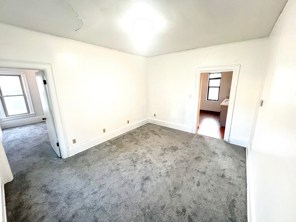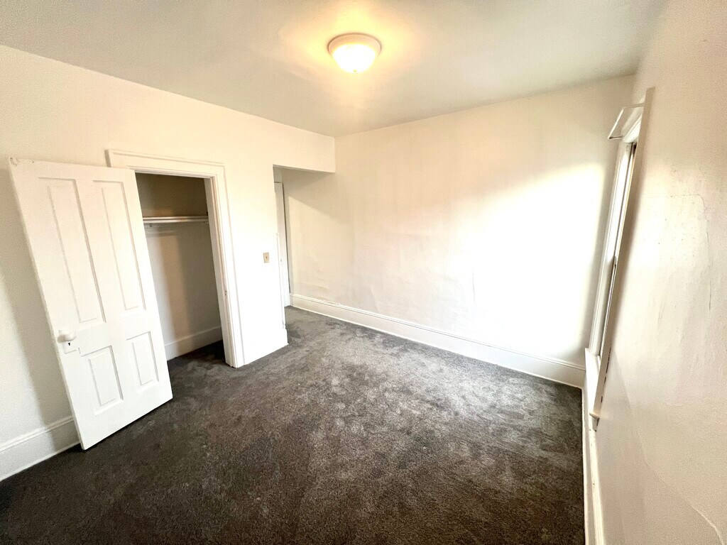 2 bed 1 bath upper back unit. Private entrance. New carpet, paint, faucets, and backsplash installed. Ample windows/natural light, large living room and bedrooms. Interior access to coin operated washer and dryer. Storage space available. Easy street parking. Tenant pays electric and gas. Owner pays water. If interested, please use “apply now” application.