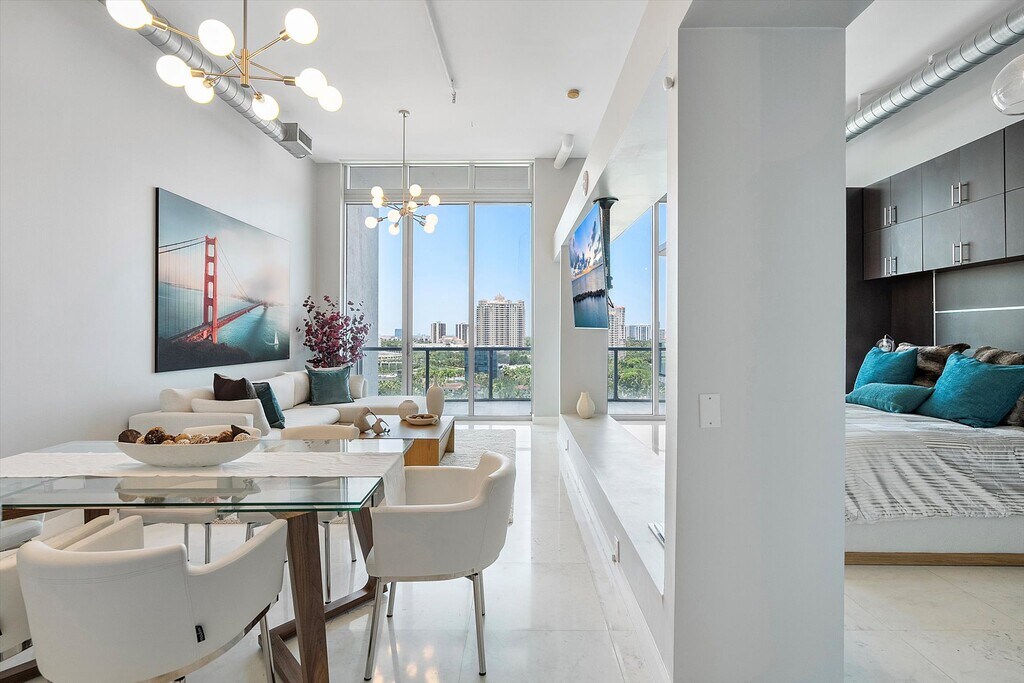 Located in the heart of Aventura this beautiful Loft Penthouse has a gorgeous industrial design with large 14 foot ceilings and windows to give you an amazing open feeling. You’ll enjoy both water front and city views from two balconies located on the North and South sides on the unit giving each of the 2 bedrooms enjoys its own balcony and view. The master bedroom enjoys a water front view of the bay to wake up-to and beautiful oversized closets perfect for the loft. While the master bathroom brings you dual vanity, bidet, standing shower and the comfort of a separate whirlpool bathtub. Decorated with modern furniture the common area allows you to enjoy comfort while keeping the open feeling of the entire unit. The building hosts a gym and fitness center equipped with cardio machines, weights, a smith machine, an aerobics room, sauna and steam room. Make great use of the pool, hot tub, marina, and conference room. Unit comes with one parking space with additional parking space available for a fee. Valet service also available through the building.