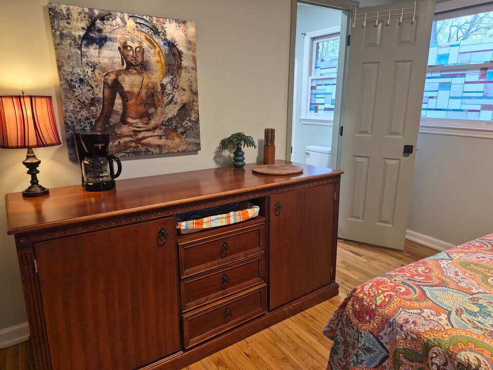 Fully furnished with FREE utilities and WIFI! This Studio is non smoking and suitable for 1 person. It is attached to a brick home and offers a separate entrance and private bath room. It does not allow access to the main house to protect privacy. There is a large parking pad suitable for 2 vehicles / boat. The studio features a water view and outdoor sitting area for relaxing. The Studio is fully furnished and features a large shower, Big Vanity with plenty of storage, Double Closet, Queen Bed, Mini-Refrigerator, microwave, and coffee maker. Conveniently located near shopping, dinning and historic Downtown Centre. Less than a 10 Minute Drive to KTH and numerous boat ramps. It is a beautiful area that allows easy access to Gadsden and Roam.