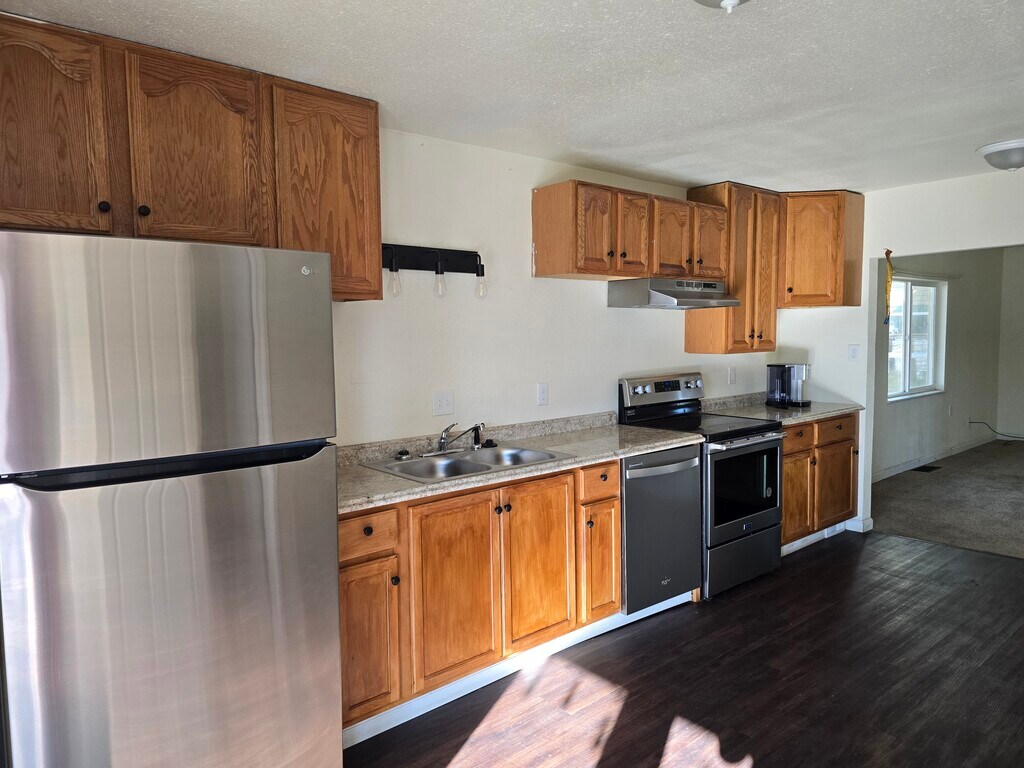 Full remodel, new carpets, both bathrooms, new kitchen, new dishwasher, new fridge, new furnace. Washer dryer hook up. Tenant pays all utilities. 3 bedroom/ 2 bath home with large backyard and off street parking. Pets are negotiable