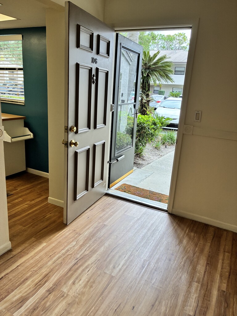 Spacious 1st floor condo with patio. Park like view.. Best location in Imperial Oaks Condominiums. Assigned parking at your door. Brand new vinyl wood flooring. Newer washer and dryer included. All utilities included except electric. Cable and internet included. Heated pool for year round swimming. Walk to Publix, restaurants,bars and banks. Only 3 miles to Safety Harbor. No pets or smoking. $125 application fee References and background check. Available Now