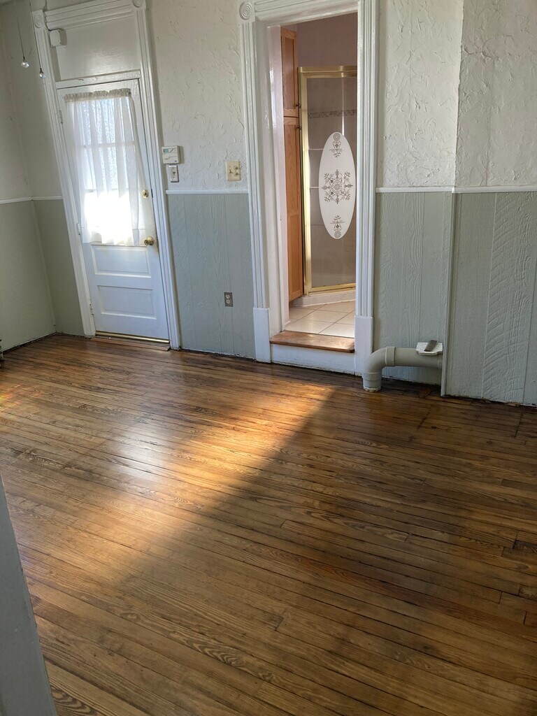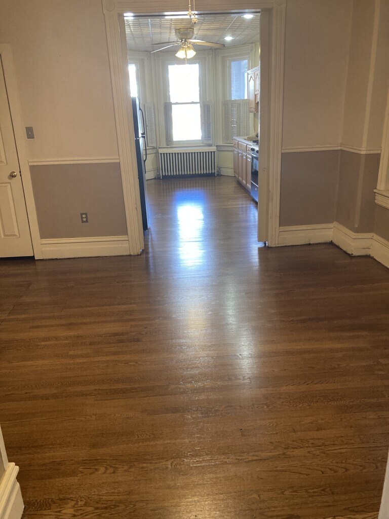 Spacious 1 or 2 bedroom apartment on 1st floor near historic district of Bethlehem. The bedrooms are walk through and the second bedroom ideally would be best used as a bonus room or office. Walking distance to all the Downtown shops and restaurants. Newer windows, refinished hardwood floors, ceiling fans, tiled bathroom, porch and small yard. Owner pays water/sewer and garbage. Tenant pays electric and gas (heat and hot water). Laundry in basement included. Located in a very quiet building. Please only inquire if you are quiet, no-smoking, and no pets. Available around April 2. Applicants must have 3x income, 680+ credit rating, and no prior evictions. First month, last month, and security deposit due at lease signing