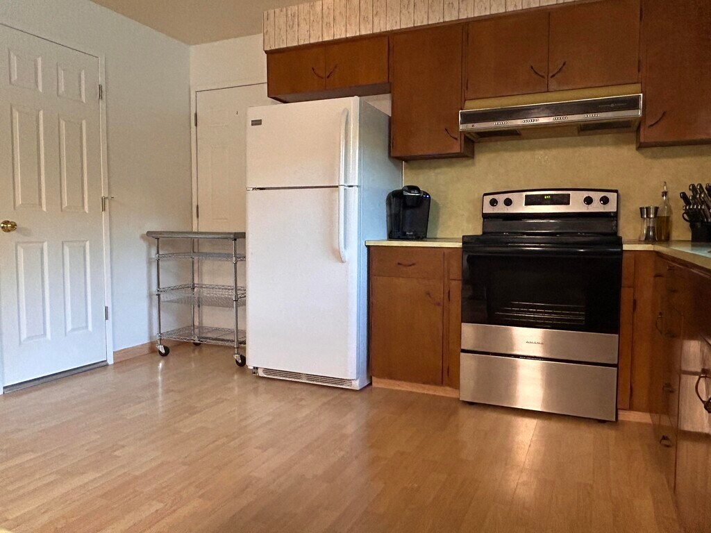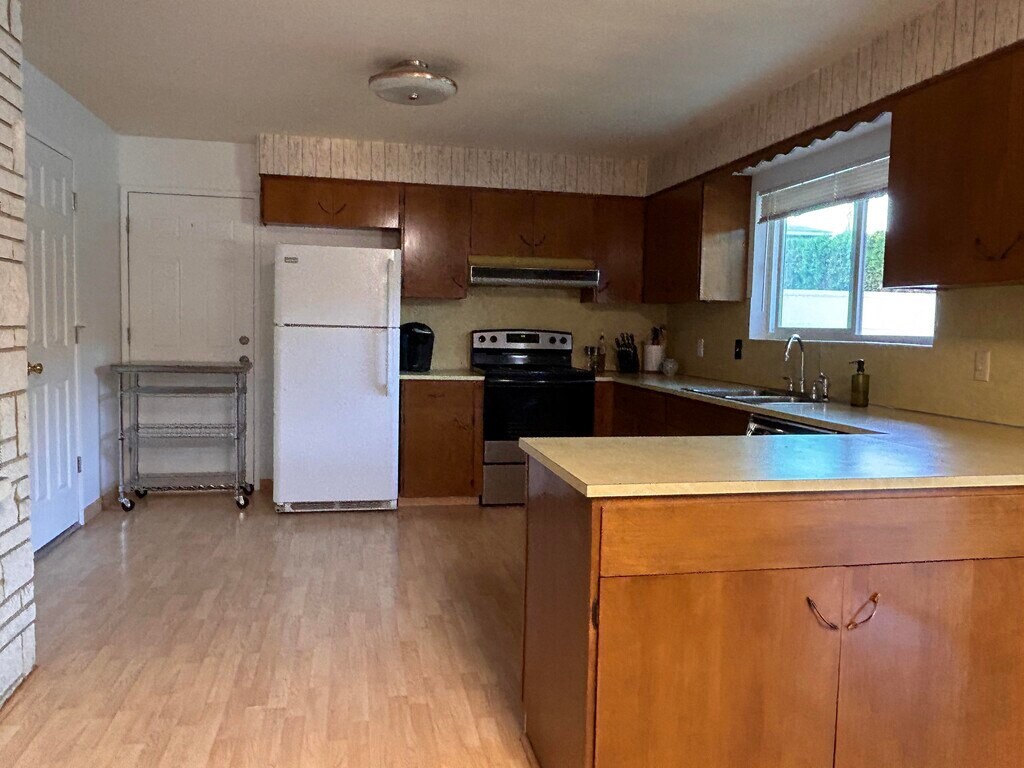 Functional and spacious three bedroom two bathroom house with a fenced backyard and covered patio. Central air and heat, underground sprinkler system, gas fireplace, and abundant built in storage and large closets. All kitchen appliances included. Laundry appliances in the garage. 2-3 parking spaces available (1 garage, 2 mid sized cars on the driveway).