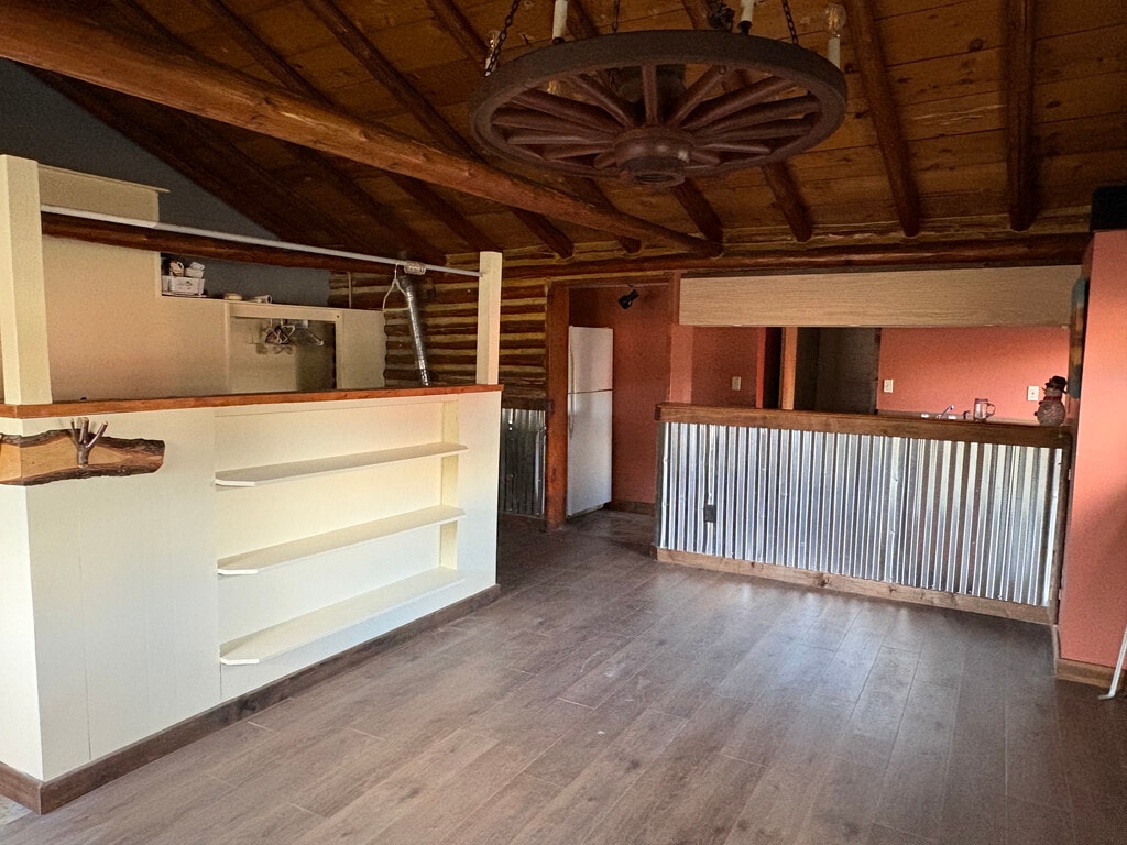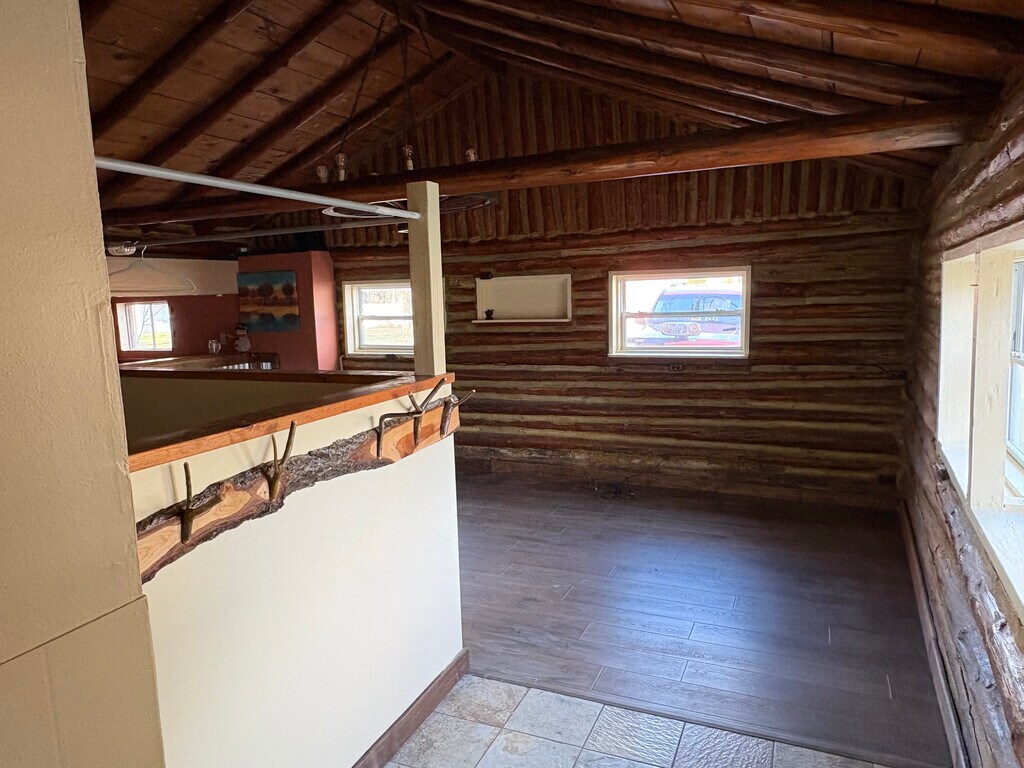 Large Studio Apartment in authentic chink-style log cabin across from Buds, next to Interlochen Arts Academy. Bedroom and closet space separated from living room by pony wall. Kitchen completely remodeled and new flooring installed. Unique, wagon wheel chandelier adds character! Gas heat, gas stove, WiFi. No smoking. No Pets.