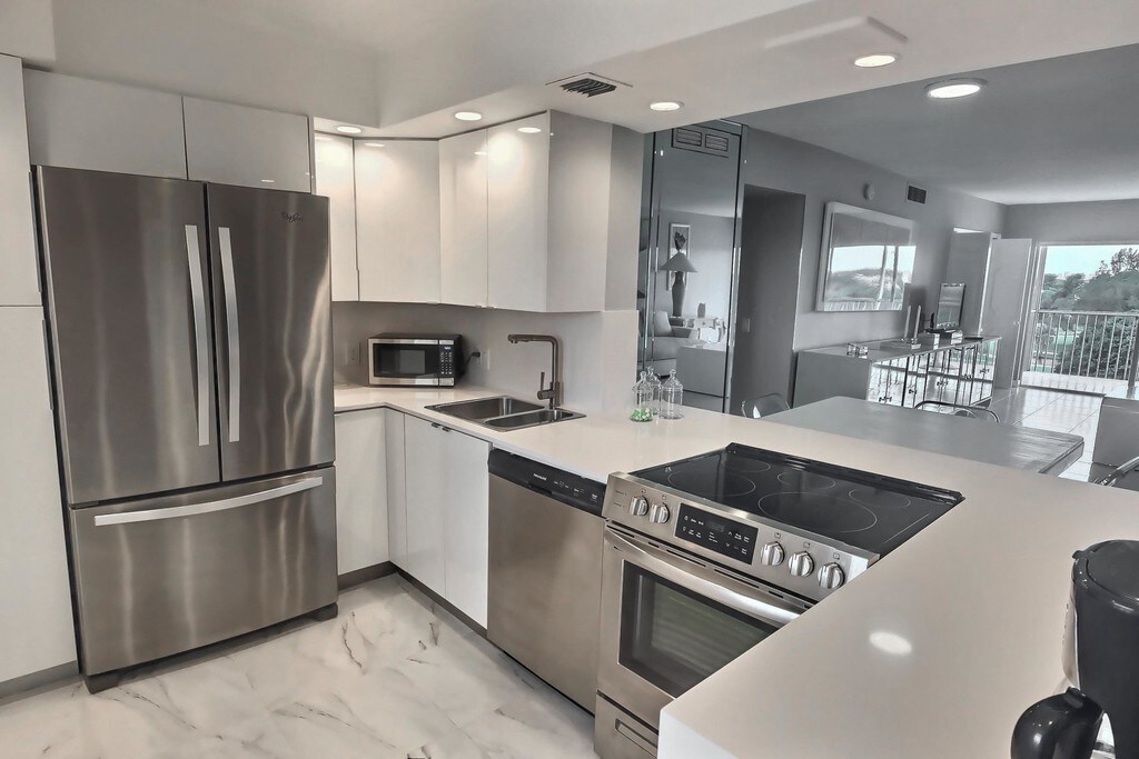 REMODELED APARTMENT, READY TO MOVE IN! CENTRALLY LOCATED. Boasting 1,250 Sq Ft total area, 180° of gorgeous golf view, quartz counter tops in kitchen and baths **Rent includes: Cable, HS WiFi, Garbage removal, sewer, water & pest control inside the Apt, just pay electric bill. Condo features many amenities, barbecue|party area|exercise area|basket|volley|racquetball|children playgrounds, tennis courts, Publix and more! 15's to beach 20's to Ft. Lauderdale Airport
