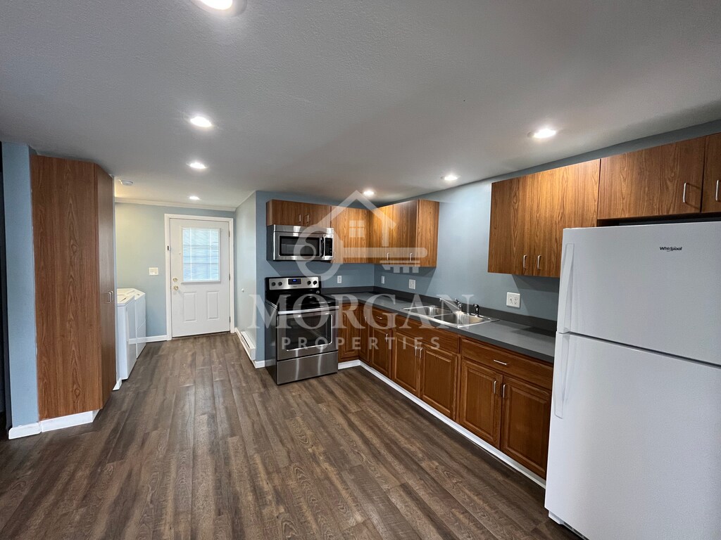 2 BEDROOM, 1 BATH GROUND FLOOR UNIT OF A TRI-PLEX. LAMINATE FLOORING THROUGHOUT WITH CARPET IN BOTH BEDROOMS. LARGE LIVING ROOM WITH WINDOW AC UNIT. KITCHEN HAS PLENTY OF CABINET SPACE. IT ALSO COMES WITH AN ELECTRIC STOVE, A MICROWAVE, A REFRIGERATOR, AND A WASHER AND DRYER. BOTH BEDROOMS HAVE CLOSETS. BATHROOM HAS A TUB AND SHOWER COMBO. OFF-STREET PARKING. NO SMOKING INSIDE UNIT. TENANT PAYS ELECTRIC AND TRASH. OWNER PAYS ALL OTHER UTILITIES. PETS ARE NEGOTIABLE WITH THE OWNER’S APPROVAL AND A $300 PET DEPOSIT & $25 FEE PER MONTH, PER PET. 2 PET MAX. RENTER’S INSURANCE REQUIRED AT TENANT COST.
