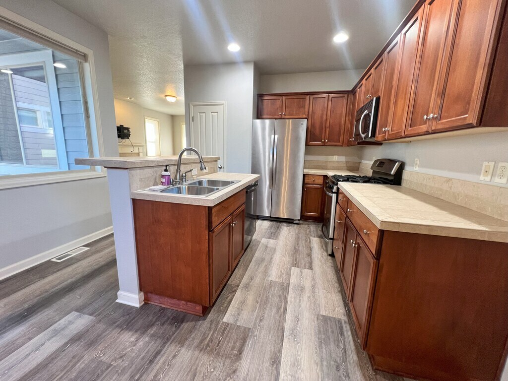 3 bedroom, 2.5 bath single family home. Attached 2 car garage, with AC! Laundry room with washer and dryer included. Mater bedroom has tray ceilings with a walk-in closet, soaking tub and separate shower. Double vanity and toilet closet. Hall bath has separate toilet and tub area from vanity. Kitchen includes refrigerator, microwave and a gas stove. Livingroom has a gas fireplace. Low maintenance backyard with a covered patio area. Hall bath has separate toilet and tub area from vanity. Kitchen includes refrigerator, microwave and a gas stove. Tenant pays for all utilities. Water/sewer, garbage, electrical and gas. Max 2 pets allowed: Cat: $25 pet rent w/ $250 pet deposit. Dog: $50 pet rent with $500 pet deposit. Rent is $2400/month. 6 Month or 12 Month Lease. Security deposit is $2500. (Depending on credit and background check) Contact HubCity Management