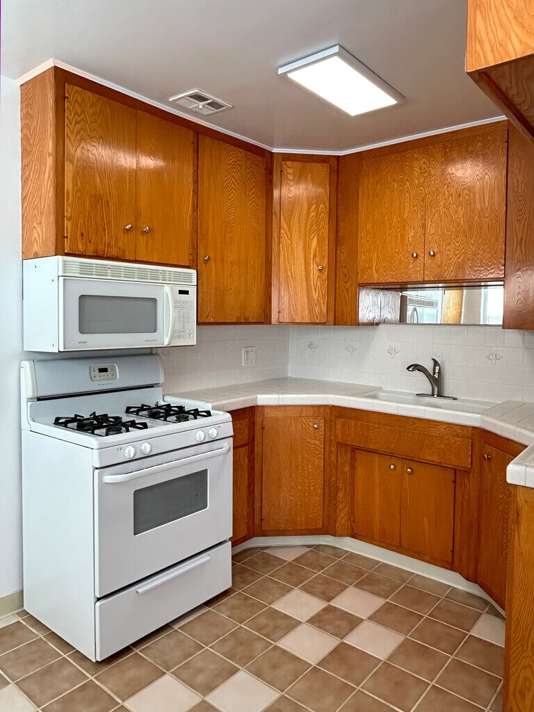 DREAMY OCEAN PARK APARTMENT Located in the heart of friendly Ocean Park just two blocks from Main Street and a short stroll to the beach and the Sunday farmers market, this spacious apartment fronts the ground floor of a sunny mid-century fourplex adjacent to the Historic District. Sheltered by tall cypress bushes, the elevated private entry porch offers a peek-a-boo ocean view and an outdoor nook for morning coffee. The front door opens into a bright and airy living space with wide south and west-facing windows, sleek ceiling fans and expansive maple flooring. The living room flows into a tiled breakfast area and a classic U-shaped kitchen equipped with a gas stove, refrigerator, dishwasher, microwave and a double porcelain sink surrounded by built-in cabinets. Accessible from doors in both the living room and hallway, the serene carpeted bedroom has a wall-length built-in closet and large corner windows fitted with room-darkening drapes. The tiled bathroom features a three-way mirrored cabinet above the vanity and an adjoining dressing room with floor-to-ceiling shelves. In the hallway, louvered doors conceal a full-size washer and dryer with an adjacent linen closet. Windows on all three sides of the apartment are fitted with slatted blinds and floor-length sheer curtains for filtered sunlight. Abundant interior storage space. Dimmable light fixtures throughout. On-site parking included for one vehicle. Sorry, no pets. One-year minimum lease. $3650 monthly rent plus $3650 security deposit. Available February 1st.