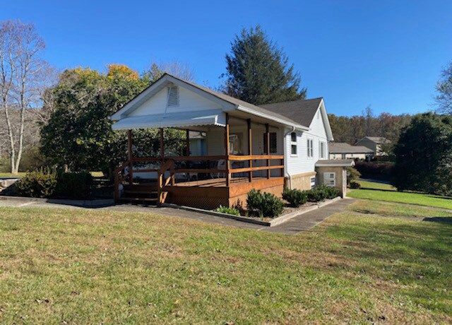 This updated 1930's bungalow is available now! The home has 2 bedrooms and 2 bath, with one bedroom being large enough for 2 beds if needed. The home has ample storage in the full basement. Spacious living room in between dining area and finished porch. Relax and enjoy morning coffee on the large covered back porch .There is a country feel but 10 minutes to West Asheville and 20 mins from Asheville. Tenant responsibilities include utilities. Lawn care provided. 1 dog considered with non refundable $250 pet fee. Breed restrictions apply. Must pass background check. Home is on a shared driveway. All furnishings to be removed.