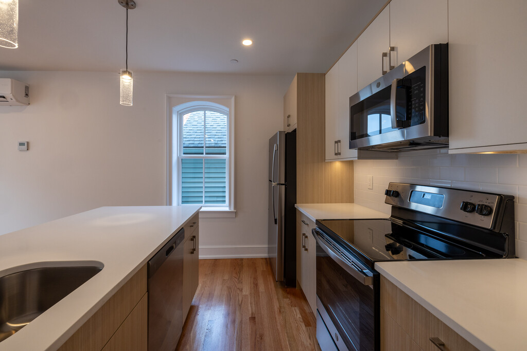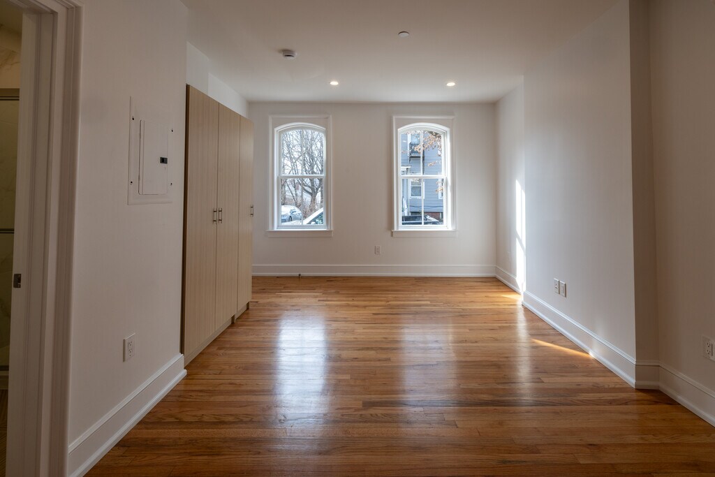 The interior space of this 1bed-1bath apartment has been thoughtfully redesigned to harmonize historic charm with contemporary living. Each unit boasts large windows that flood the rooms with natural light, and original hardwood floors meticulously refinished to their former glory. Modern kitchens are equipped with state-of-the-art appliances, sleek cabinetry, and quartz countertops, offering a perfect blend of functionality and style.