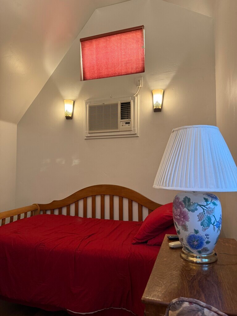 Fully furnished private charming cottage by San Jose country club - Single bed perfectly for single professional. Comfy bedding; Fully furnished; Fully remodeled with private bath and shower; - Private rose garden entry; Friendly parking; View of redwood trees - Fiber optical high speed internet; Wall mounted TV; Heating +AC - Mini kitchen including refrigerator, microwave, coffee maker, toaster, silverware, knife set, dishes and cups, many more.. - True divided thermo windows and French door; Solid teak hardwood floor; High vaulted ceiling; Marble counter; Stain glass light fixture - Privilege to exercise equipment, redwood deck - Your own mail box Walking distance to Country Club Villa Shopping Center for grocery, restaurants, fast food, bakery, CVS, bank, etc. Very quiet and safe neighborhood: Great for walking/hiking/biking Nearby Alum Rock park and private country club. Easy access to 680/101 Ready now. $1650 rent and $100 utilities.