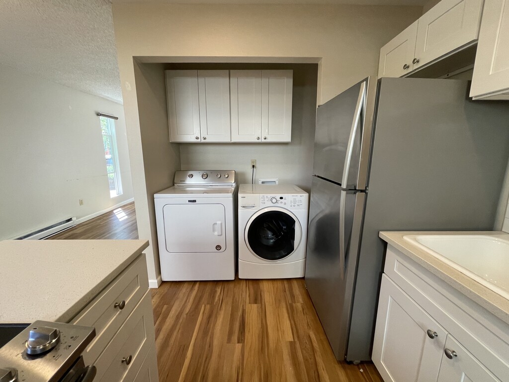 Pleasant 2 bedroom unit. Living room, dining room, and kitchen downstairs; bedrooms and bathroom upstairs. Updated bathroom, kitchen cabinets and appliances, flooring, carpet, and paint. Patio with storage shed off the dining room. Responsive landlords live in house next door. Washer/dryer in unit. Max Orange line short walk away. Two off-street parking spots, small gardening area. Applications accepted starting 9 AM 1/19/2026