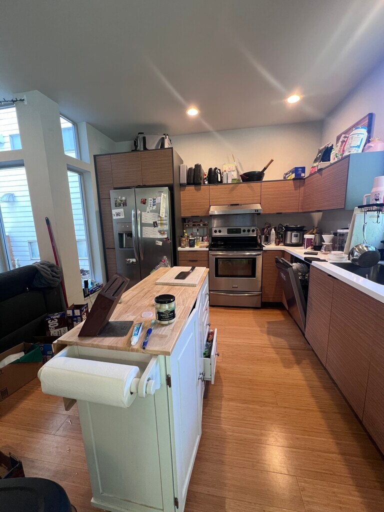 Mount Baker - 2018 built townhouse, 3 floors + roof top. End unit, plenty of privacy and security. Available end of October / early November. 5 min walk to Mt Baker light rail station, 8 min walk to bus terminal, plenty of street parking. (Typically no issue parking 2 min walk away) 3 bed 2 bath, with LDK on first floor, 2 bed 1 bath (with large landing area) on second floor, large primary, landing area, bathroom on third floor. Rooftop on fourth floor. Stacked washer and dryer on second floor. Enclosed front and back yard. Mini splits on first and third floor, heaters in every room. Internet included. Water, sewage, electricity to be paid by renter. Pets allowed with pet fee of $50/month. Will come unfurnished.
