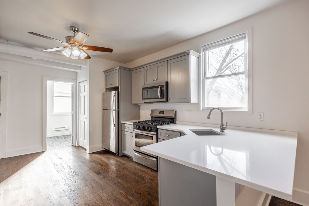 Roscoe Village Duplex Up 3 Bed Couch House Featuring: THIS IS A MUST SEE * Large open living space * Partially rehab * Corner building * Brand New Kitchen and Bathroom * Gorgeous kitchen island * Beautifully hardwood floors * In-Unit laundry. * High ceilings * Tons of natural light * Corner building * Central heat & AC * Professionally managed * Convenient access to 90/94, Marianos, Costco, and much more! Bedroom 1: 8’ x 11’ 10” L Shape Bedroom 2: 14’ 5” x 15’ 6” Bedroom 3: 10’ 4” x 13’ L Shape Massive closet space