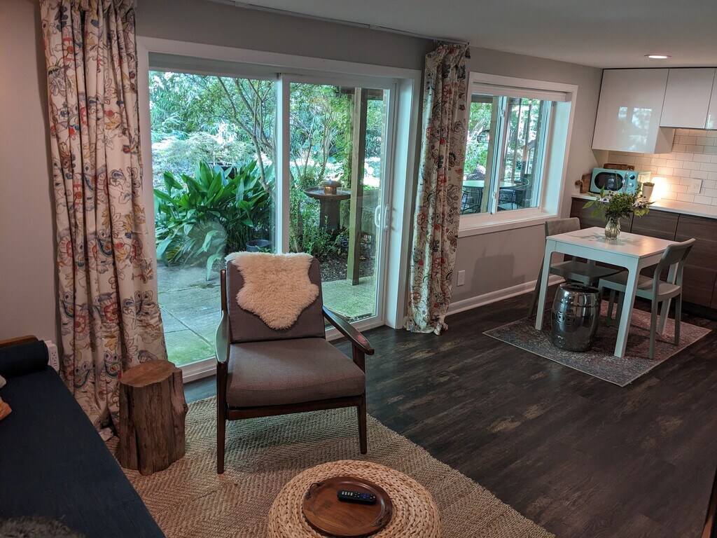 *Single Occupancy Only* Fully furnished terrace level apartment in house with separate entrance, one bedroom, additional den that can accommodate guests, full bath with large shower, kitchen with refrigerator, dishwasher, induction cook top and separate oven. Stacked washer/dryer in unit and plenty of closet space. Walkable to downtown Chapel Hill, UNC campus and University Mall Month to month lease available, rent includes all utilities plus Wi-Fi, Netflix and Hulu