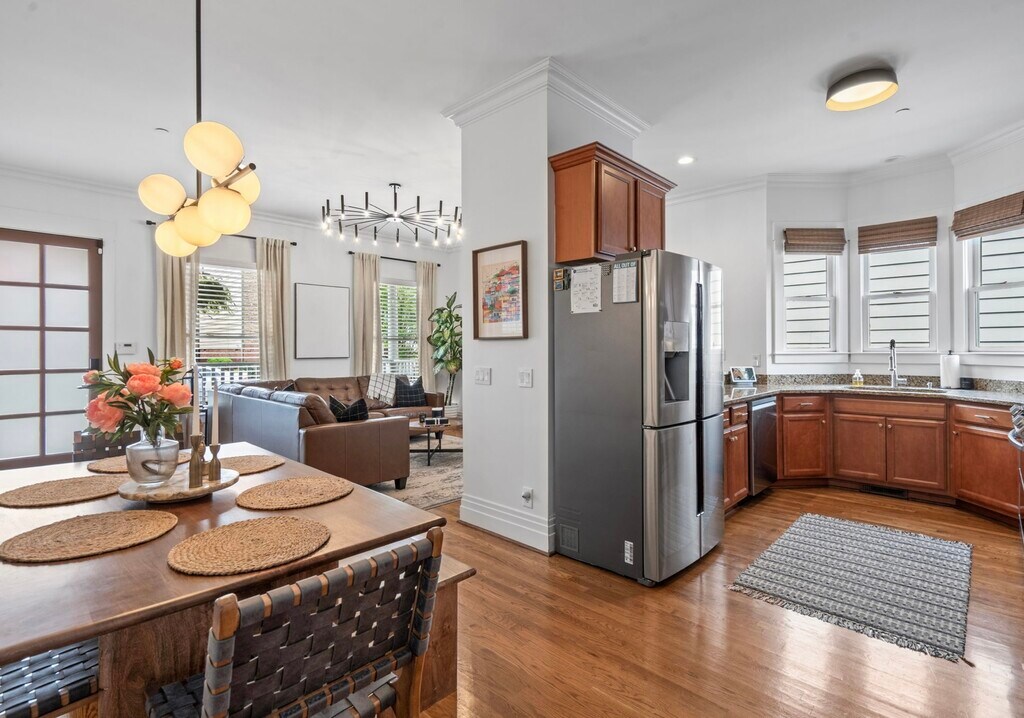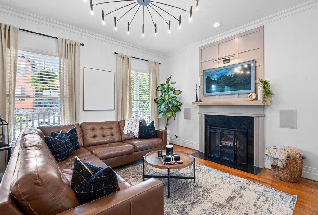 This 3-bedroom Cape Cod-style home is filled with upgrades. Enjoy solid hardwood floors on the first level and LVP on second level, new smart kitchen appliances, granite countertops, fresh interior paint, and ample natural lighting. The home also features multiple built-ins, gated and covered side walkway to garage/alley, a balcony overlooking the amphitheater, and more. The first-floor owner's suite comes with an attached flex space leading to balcony, perfect for a nursery, private study, or extra living space. Upgrades include new high-end light fixtures, in-wall speakers in the living room and balcony, with more wiring in the flex room. The 2-car garage comes wired for an electric car charging hookup. Neighborhood features 3 dog parks, community garden, playground and amphitheater. Shops, coffee, restaurants, and more are walkable within minutes! Located 20 minutes to Nashville & Clarksville! Kitchen cabinets are in the process of being refinished.