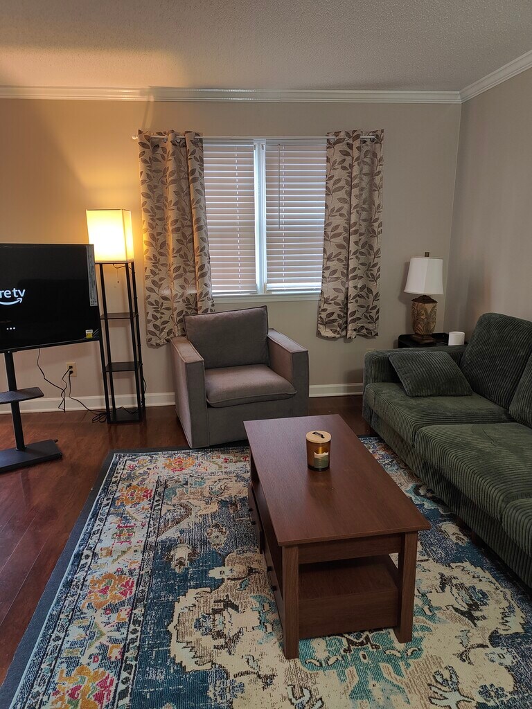 Full Furnished Turnkey property......one price, includes everything, heat, air conditioning, water, electric, high speed internet with streaming TV service. Full kitchen with pantry, range, refrigerator with ice maker, dishwasher. Full bath with double vanity upstairs, 1/2 bath downstairs. 2 surface parking spaces. Long term rental required, minimum 1 years, longer term considered. Back Patio. Quiet location. No pets Security Deposit required Convenient to I-24, both on and off, close to shopping and entertainment