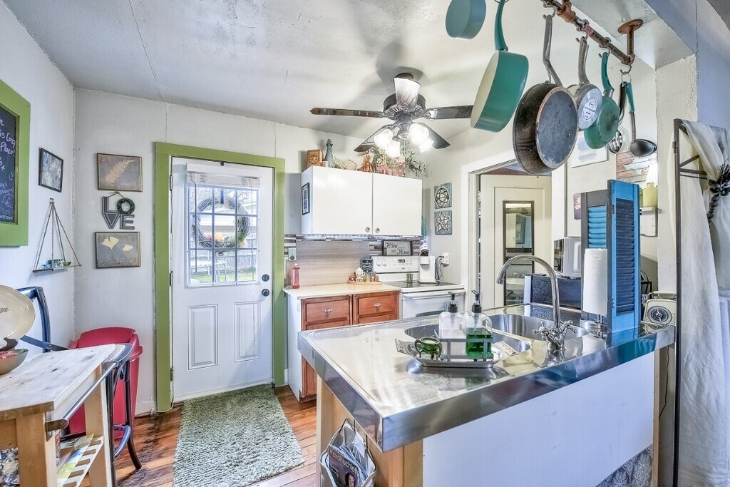 Move in Ready! This charming 1 bedroom, 1 bathroom guest home - with ALL utilities included - is located in a well established, historic neighborhood and is just minutes away from parks, local schools and the downtown shopping district in historical Waxahachie. With all utilities included in rent, this private, cottage-style detached guest home features its own private entrance & dedicated parking spot, a private outdoor patio, and access to a large, fenced and gated backyard. The home boasts beautiful hardwood flooring throughout, as well as blinds for added privacy, and comes fully furnished with a cozy living area that open into the kitchen and dining areas, with ceiling fans in the sleeping/living area, kitchen, and bathroom. A fully stocked kitchen comes equipped with all the cooking essentials: a 4 burner electric stove cooktop/stove, double stainless steel sinks, a refrigerator, freezer and microwave. The spacious bathroom has an original cast iron clawfoot tub and shower combo, with ample storage room. The prime location of this guest house is perfect for teachers or students, as well as or working professionals in the area - just 1 mile from historic downtown waxahachie, near all major highways and the medical district, as well as walking distance to SAGU and several parks. Don't miss out on this lovely fully-furnished guest house with all utilities included - everything you need for comfortable living in the heart of Waxahachie!