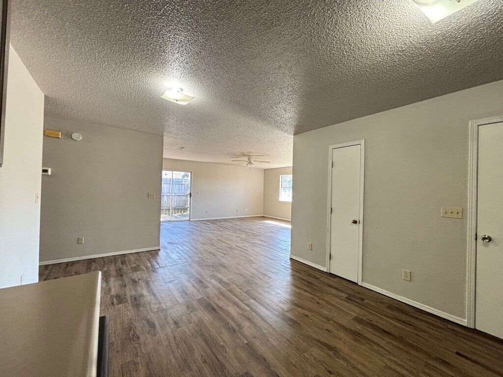 Beautifully updated 3 bedroom, 2 bath, 1 car garage duplex with new flooring, paint, and more! Close to schools, grocery, restaurants, and more! Enjoy the fully fenced oversized backyard with private patio area, oversized living room and open concept floorplan.