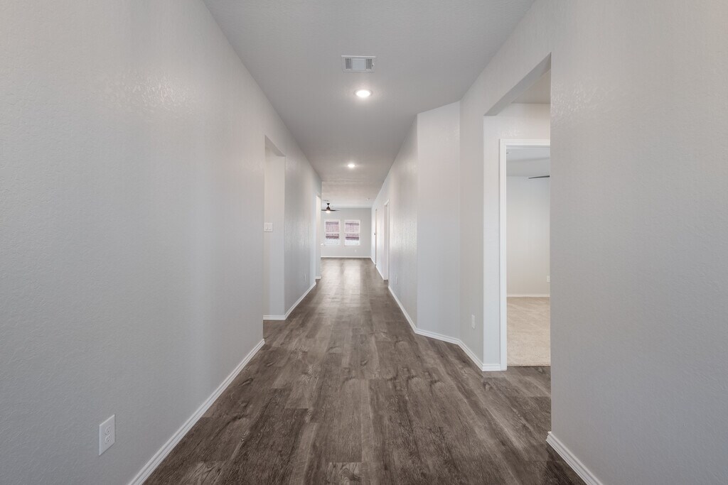 Recently remodeled single-story home with all the appliances and access to all the awesome amenities that Hidden Trails has to offer! Access to the Gym, catch and release fishing pond, the multiple pools, the activity park with zip line, sports court, walking trails, all of it. Pets allowed. 2,362 sq/ft living space, featuring 4 bedrooms + a dedicated study, and 3 full bathrooms. Flooring is Shaw premium LVP through main and wet areas, while the bedrooms and study are carpeted. Recently updated throughout with fresh paint on every wall, upgraded lighting fixtures, and brand-new ceiling fans in the living room, study, back porch, and all bedrooms. The kitchen and bathrooms have granite countertops, new faucets, a brand-new stainless steel refrigerator, 5-burner gas stove, and dishwasher. Endless hot water with the tankless water heater. Washer and dryer are included, along with a water softener for added convenience. The freshly painted garage features additional lighting, making it perfect for multifunctional use whether as a workshop, home gym, or extra storage. The property has a sprinkler system with a smart controller to efficiently keep the yard watered. This family-friendly community hosts regular events and is served by the highly regarded Comal ISD (schools to be verified by applicant). Home is ready for immediate move-in! Pets allowed. Each pet requires additional refundable deposit with your choose of non-refundable pet fee or pet rent.